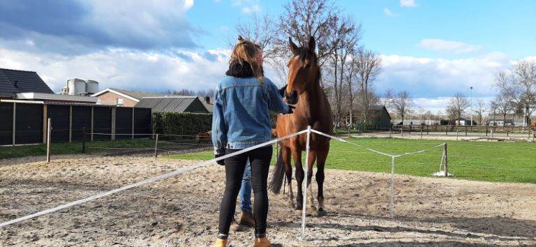 Ik was al een bekende van Marjolijn en Anniek en ik merkte dat ik me daardoor ook op mijn gemak voelde. Ik gaf vooraf aan dat ik het wel een beetje spannend vond om met het paard te gaan werken. Ik heb zelf weinig ervaring met paarden en vind ze vaak onvoorspelbaar.