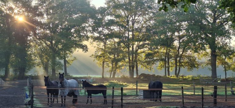 In mijn zoektocht kwam de trinity voorbij. Een merrie met veulen en ook nog drachtig van een nog te verwachten veulen. Opgegroeid in een bos in kudde met hengst in Drenthe. De merrie had een band met de hengst er vond een natuurlijk dekking en geboorte plaats. Geen kunstmatige inseminatie waar de merrie niks te zeggen heeft over de hengst. Ik maakte kennis met de Bosnische Bergpaarden van Roos. Een robuust paard, niet doorgefokt maar nog zo dicht mogelijk bij haar oorsprong. Een bedreigd paardenras. Dat raakte! Ik voelde het puzzelstukje klikken en zag tegelijkertijd de prijs en dat het niet om één maar om drie pony’s ging! Wat het hekje? Hoe ga ik dat ooit aan mijn man vragen?! Ik vroeg om één paard en nu krijg ik er vier?